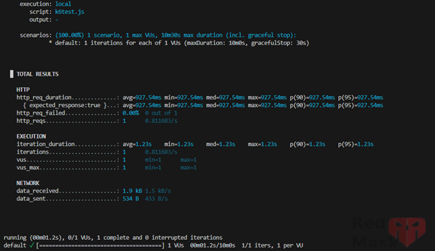 - Run it from the terminal in current directory of your js file : k6 run k6test.js